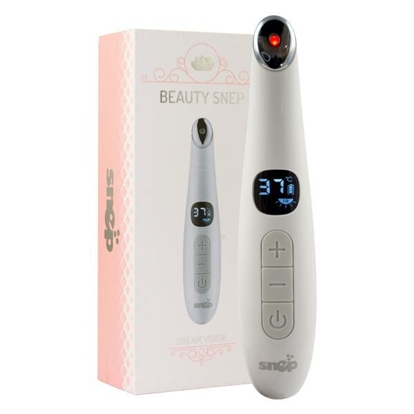 This heated eye massager with vibration and photons features high-frequency vibration, warm compression, and red light. It's used with eye cream and other skincare products for radiant, firm skin around the eyes.